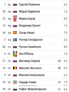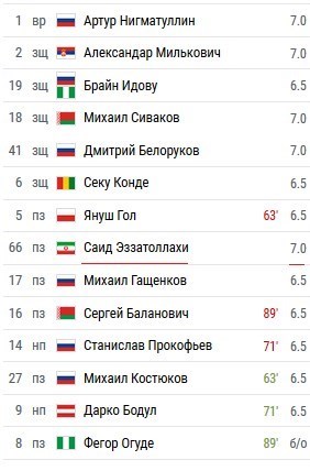 همچنین این رسانه معتبر ورزشی روسیه برای سعید عزت‌اللهی، دیگر ملی‌پوش ایرانی عضو تیم آمکار نمره فنی خوب هفت را در هفته چهاردهم لیگ برتر فوتبال این کشور در نظر گرفت.