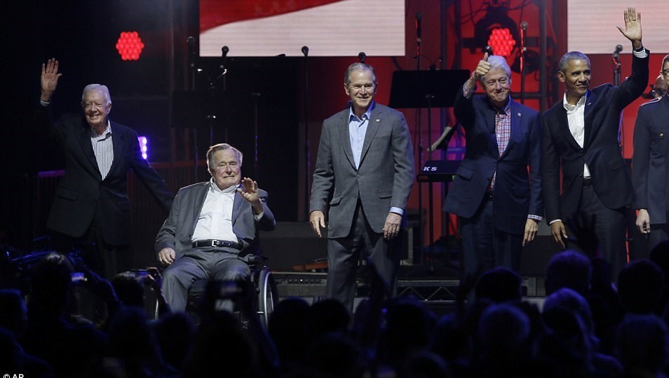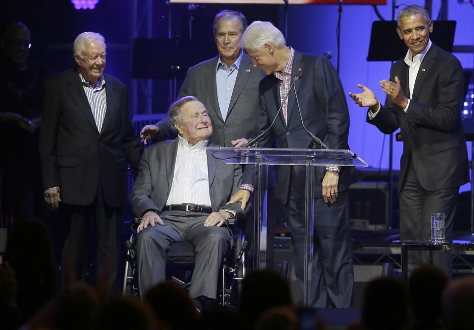 این 5 رئیسجمهور در یک کنسرت خیریه در تگزاس حاضر شدند که هدف از این کار جمع آوری کمکهای مالی به قربانیان توفان در تگزاس، فلوریدا، پورتوریکو و جزایر ویرجین بود.