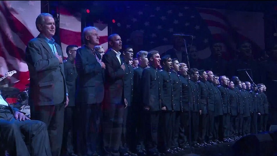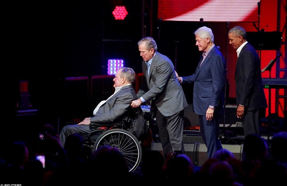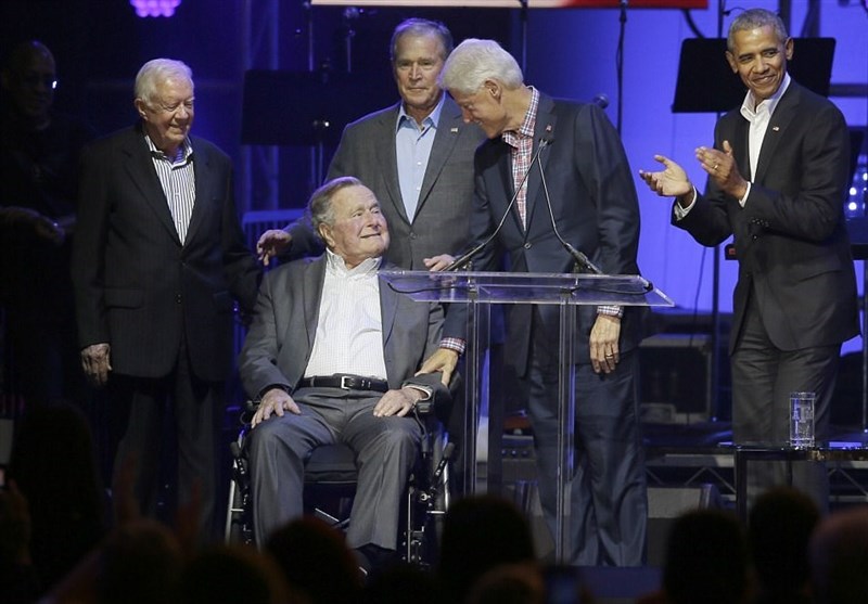 به گزارش گروه بینالملل خبرگزاری تسنیم به نقل از دیلی میل، باراک اوباما، بیل کلینتون، جیمی کارتر و بوش پدر و پسر 5 رئیسجمهور در قید حیات آمریکا بودند که برای اولین بار از سال 2013 به بعد در کنار یکدیگر حاضر شدند.