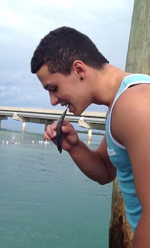 بر اساس گزارش میلآنلاین، این پسر جوان یک ماهی کوچک را بین دندانهایش گرفت و روی پلی که روی رودخانه پر از ماهی عظیمالجثه "تارپون" قرار دارد دراز کشید.