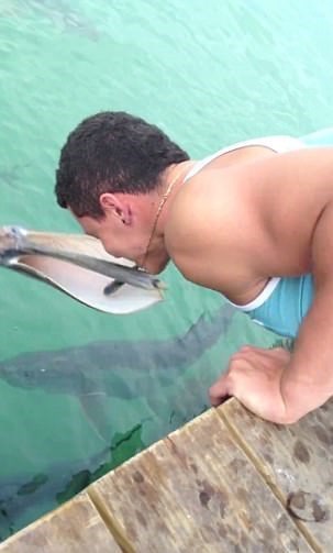 او سعی داشت به این شیوه به آنها غذا بدهد اما به یکباره چیزی شبیه به یک موشک به سمت پسر آمد و ماهی او را دزدید.