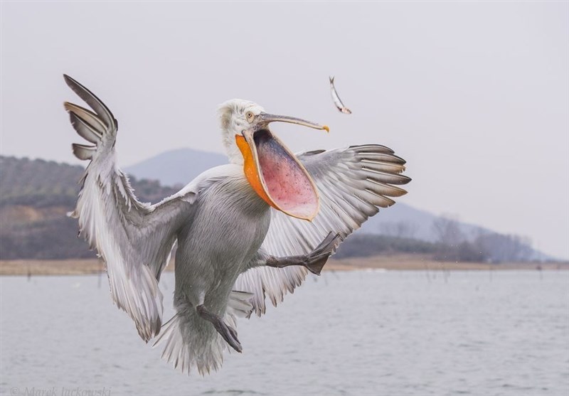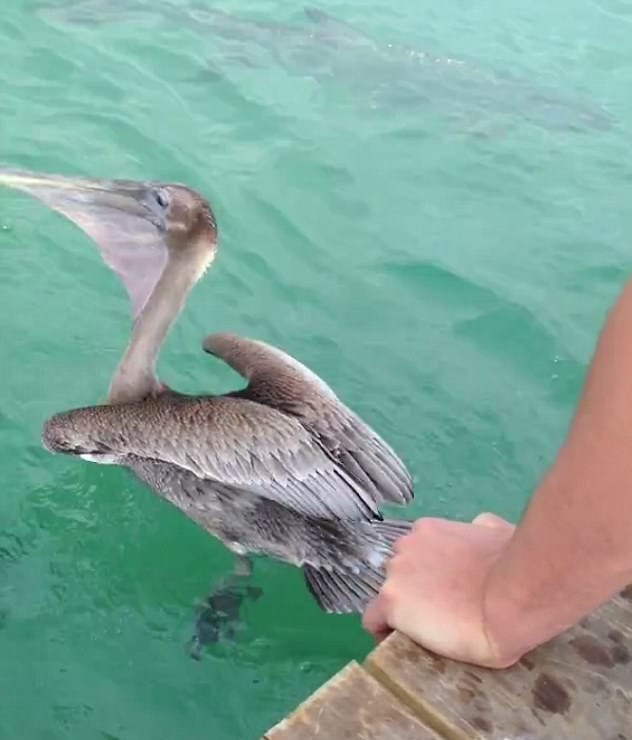 یک پلیکان گرسنه که شاهد ماجرا بود و گویا بیشتر از "تارپون ها" گرسنه بود به سمت طعمه شیرجه رفت و آنرا بلعید.