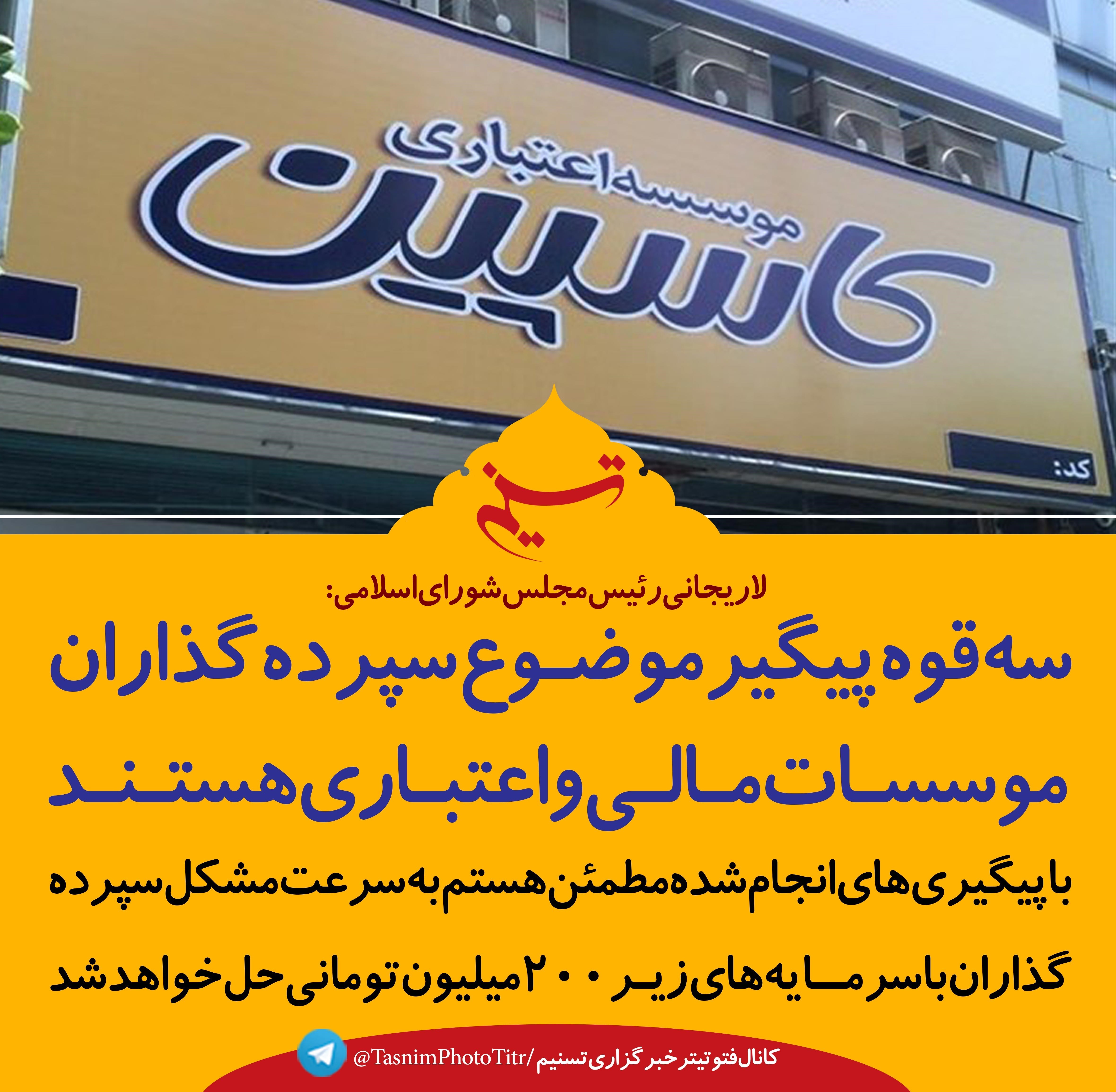 فتوتیتر/لاریجانی:سه قوه پیگیر موضوع سپرده‌گذاران موسسات مالی و اعتباری هستند
