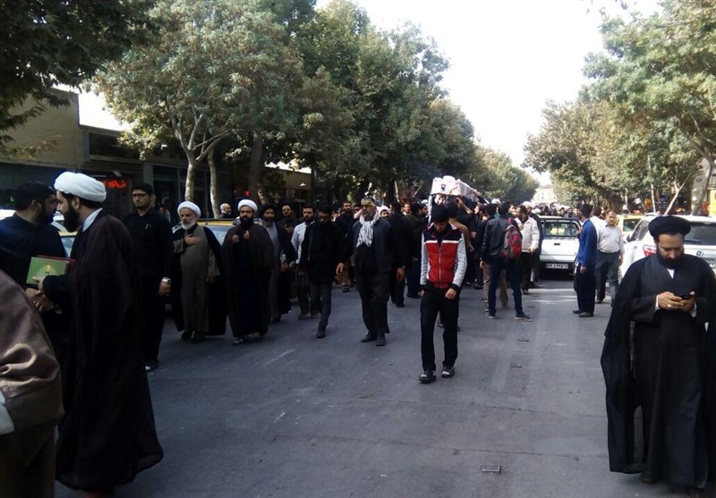روحانیون حوزه علمیه اصفهان گرد پیکر دوست و همراه قدیمی خود که چند سالی او ندیده بودند حلقه زدند و نوای یاد حسین (ع)، شور شیعیان را زنده کرد.