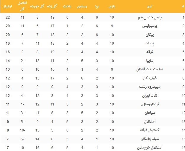 جدول لیگ برتر را در زیر میبینید: