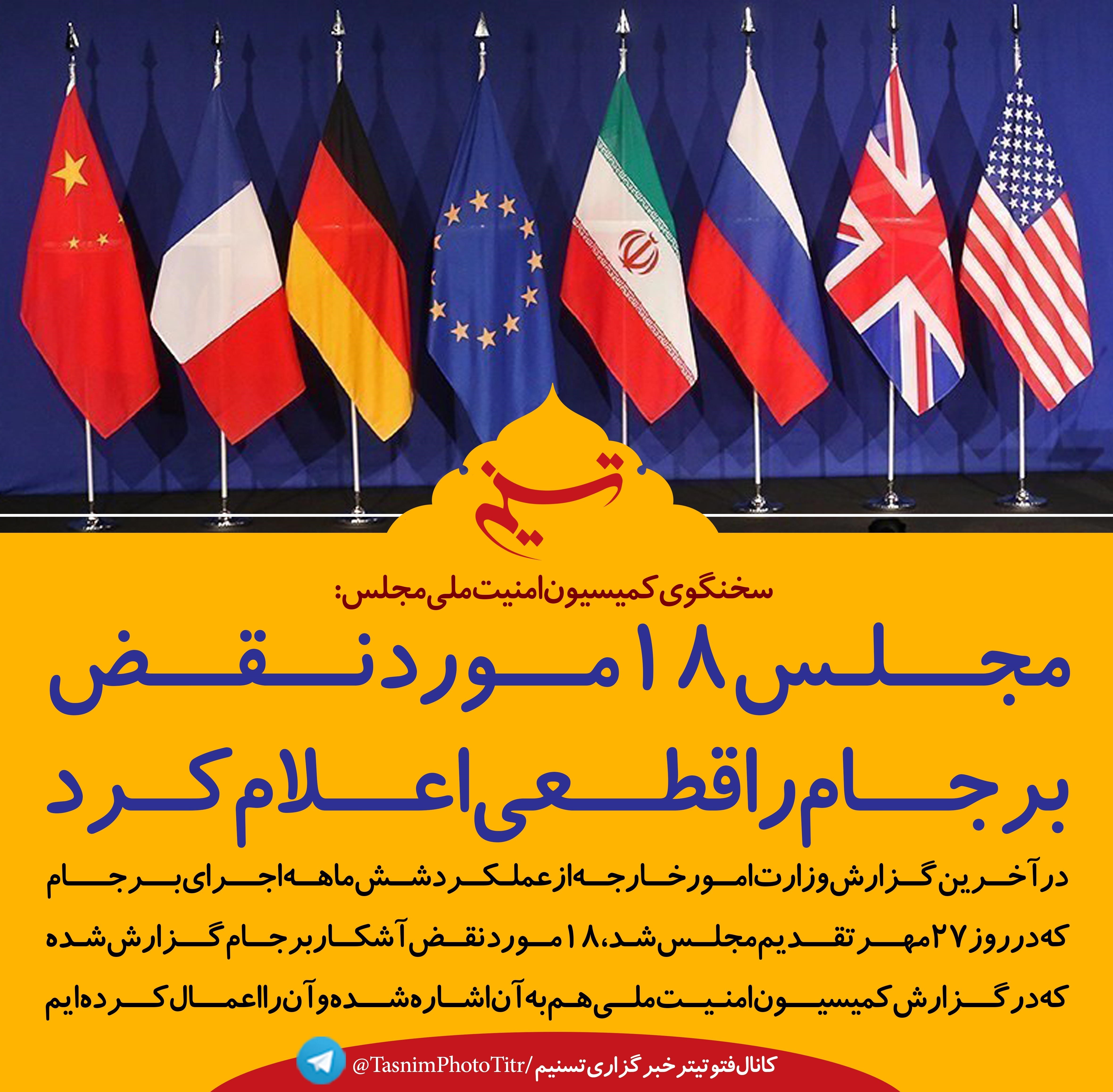 فتوتیتر/ مجلس "18 مورد نقض برجام" را قطعی اعلام کرد