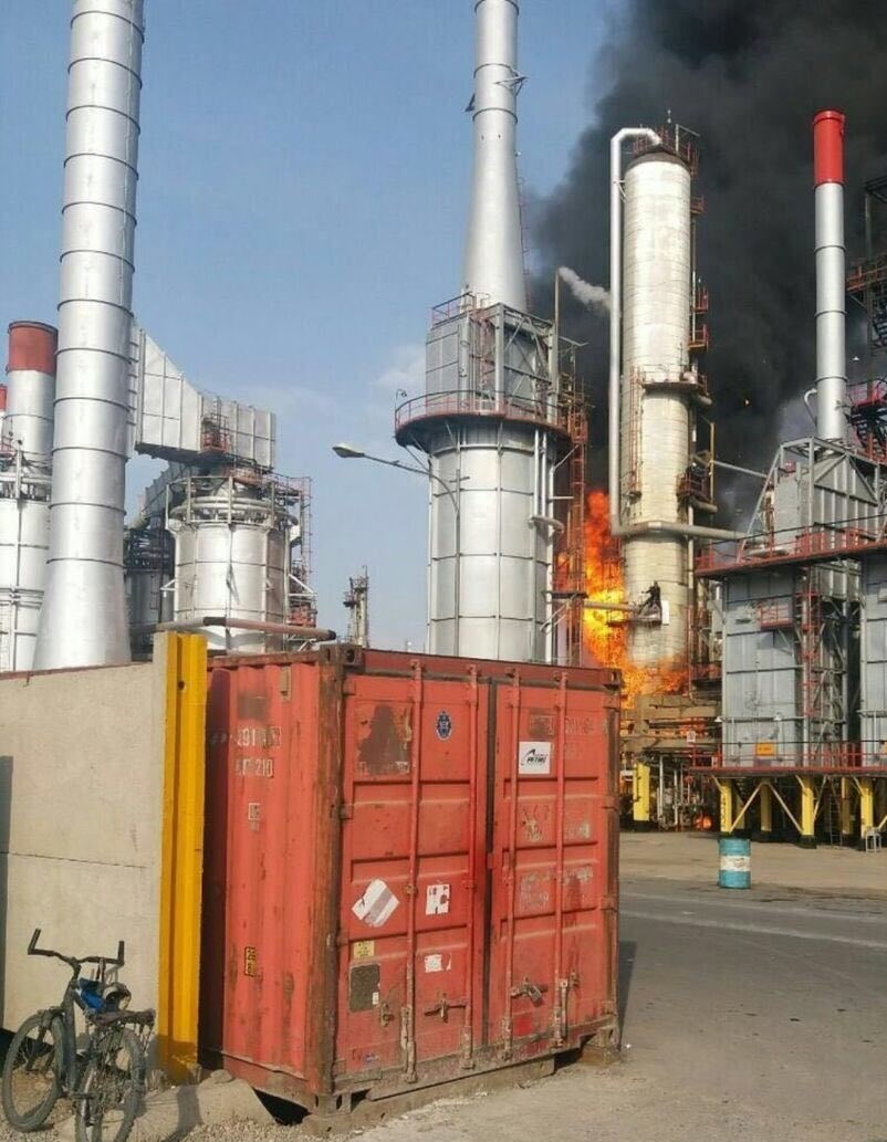 تصویری از لحظات نخستین حادثه آتش سوزی در پالایشگاه تهران