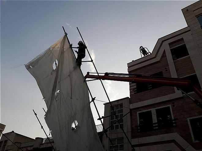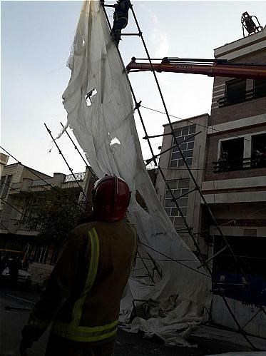 وی ادامه داد: نیروهای عملیاتی بیدرنگ با کشیدن نوار هشداردهنده از رفتوآمد شهروندان جلوگیری کردند و پس از قطع جریان اصلی برق از سوی عوامل شرکت برق، به وسیله تجهیزات مخصوص و جرثقیل آتشنشانی مشغول مهار داربستهای معلق و ایمنسازی محل حادثه شدند.