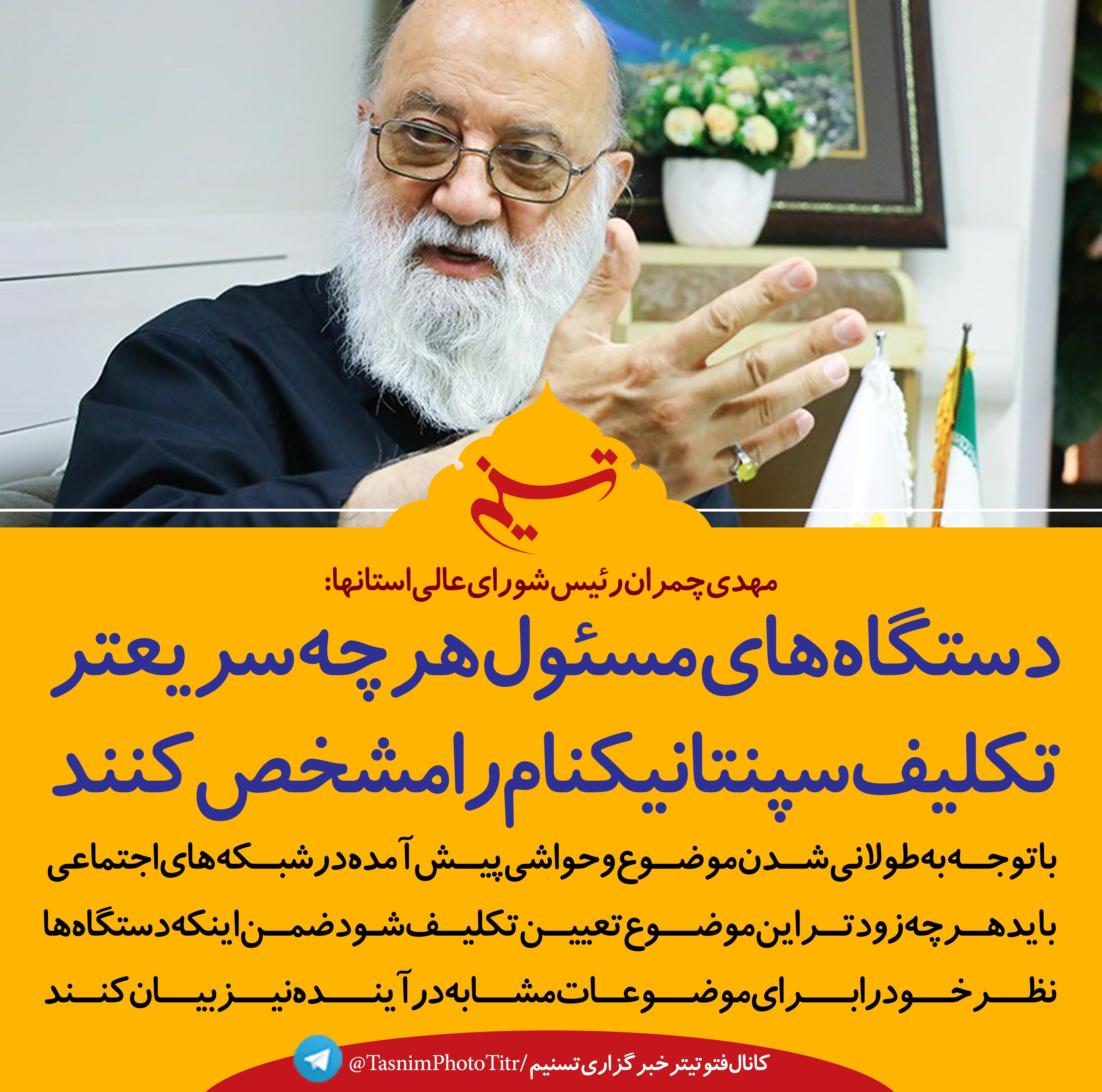 فتوتیتر/چمران: دستگاه‌های مسئول هر چه سریعتر تکلیف " سپنتانیکنام" را مشخص کنند