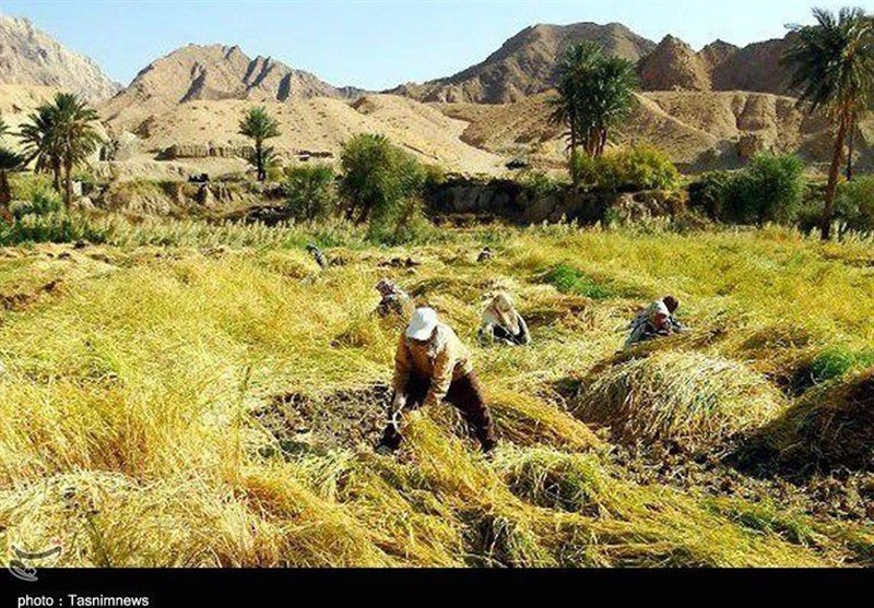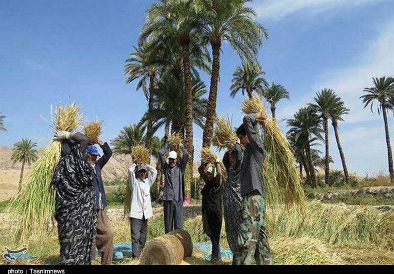 در حال حاضر 20 هکتار از اراضی کشاورزی روستای ازمیغان زیرکشت برنج است که این روزها 100 کشاورز به صورت سنتی مشغول برداشت آن هستند. برداشت برنج همزمان در کنار برداشت خرما این روستا را به روستایی متفاوت تبدیل کرده است.