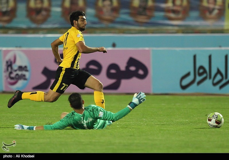 مهرداد محمدی مهاجم تیم سپاهان در حالی که نیازمند از دروازه خود خارج شده بود نتوانست دروازه تا حدود خالی را از پشت محوطه جریمه به گل تبدیل کند.