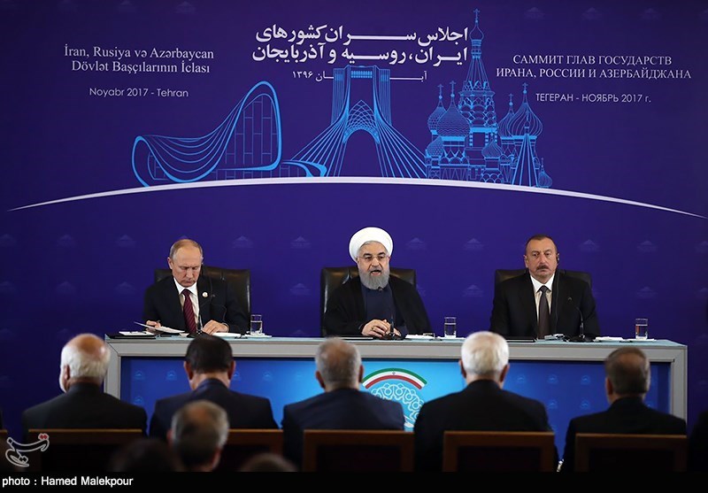 روحانی بیانیه تهران را در ادامه بیانیه باکو، تکمیلکننده و شتابدهنده روند همکاری سه کشور دانست و گفت: ایران ، روسیه و جمهوری آذربایجان سه کشور نفتی و گازی هستیم که تلاش های مشترکمان میتواند زمینه رشد سریعتر اقتصادهایمان را فراهم کند. در این رابطه ایجاد صندوق سرمایهگذاری مشترک سه جانبه برای سرمایهگذاری در بخشهای مختلف اقتصادی، توسط ما خواهد توانست توانمندیهایمان را چند برابر و توسعه همکاریهایمان را افزونتر کند.
