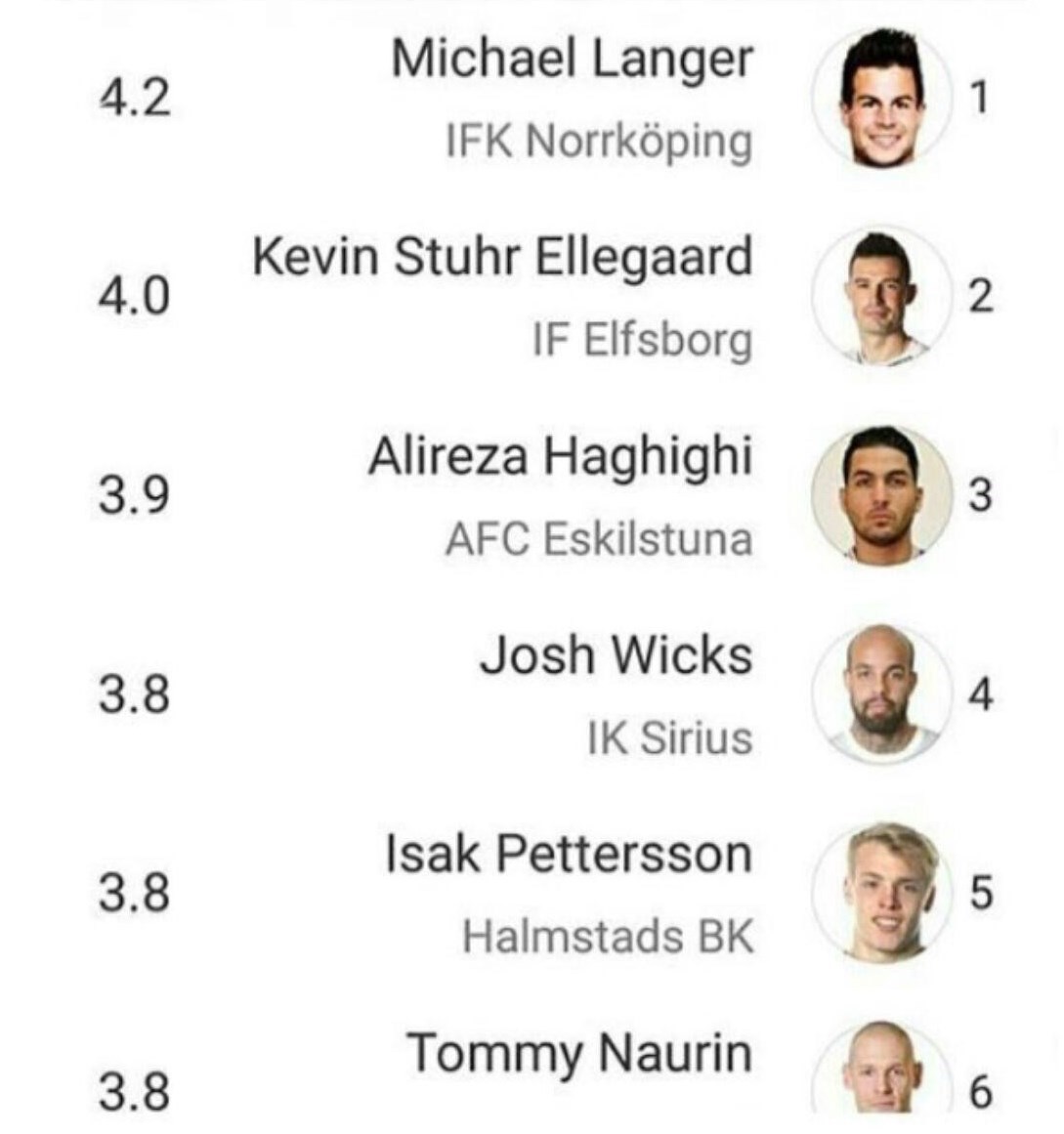 دروازه بان ایرانی اسکیلستونا با میانگین 3.9 مهار توپ در هر بازی در رتبه سوم برترین دروازه بان های لیگ سوئد قرار دارد.