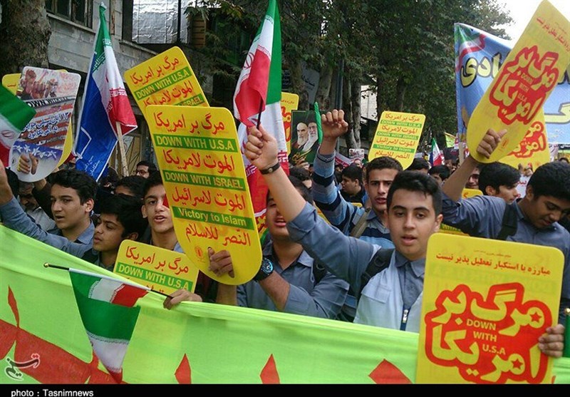 شرکت کنندگان در راهپیمایی13 آبان با سردادن فریادهای مرگ بر آمریکا در قطعنامه پایانی تاکید کردند: عیان شدن چهره بی‌نقاب آمریکای جهانخوار در مقابله با انقلاب اسلامی و مردم ایران برای چندمین بار نشان داد که آمریکا همچنان غیرقابل اعتماد است و نباید اجاز داد که تجربه مذاکره بی نتیجه با آمریکا و خیانت دوباره آن ها فراموش شود.