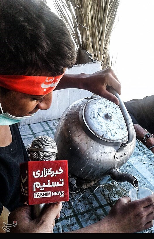 در محوطه قدمی میزنم که ناگهان نوجوانی نظرم را جلب میکند که سربند به سربسته و برای زوار چای میریزد.