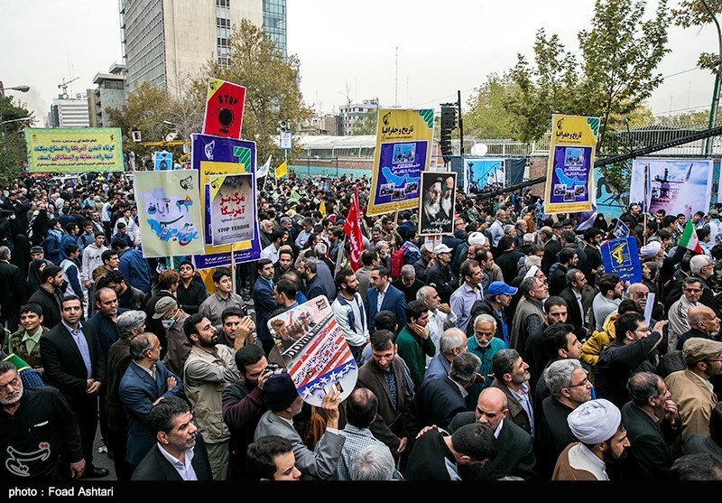 گفتنی است در پایان این مراسم قطعنامه یومالله 13 آبان قرائت که بندهای این قطعنامه با تکبیر راهپیمایان مورد تائید قرار گرفت و پرچ آمریکا و اسرائیل نیز به آتش کشیده شد.