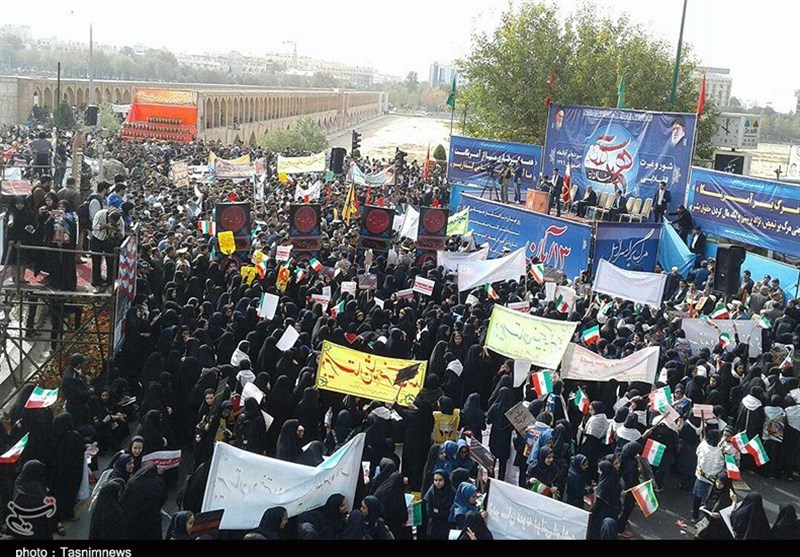 به گزارش خبرگزاری تسنیم از اصفهان، راهپیمایی یوم الله 13 آبان صبح امروز همزمان با سراسر کشور در اصفهان برگزار شد. این راهپیمایی همچون همیشه پرشور و با حضور اقشار مختلف مردم ولایتمدار و شهیدپرور اصفهان برگزار شد.