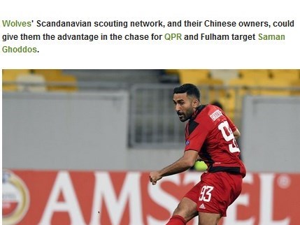 در ادامه این خبر آمده است: هر چند لئو بوناتینی، مهاجم فعلی تیم ولوور هامپتوون پرطراوت کار میکند اما نگرانی اصلی باشگاه در عمق خط حمله است که همچنان وجود دارد. البته نمایندگان 2 باشگاه کوئینز پارکرنجرز و فولام پنجشنبه هفته گذشته با حضور در اسپانیا سامان قدوس، ملیپوش ایرانی تیم اوسترساندس سوئد را در بازی هفته چهارم مرحله گروهی لیگ اروپا برابر اتلتیکو بیلبائو تحتنظر گرفتند.
