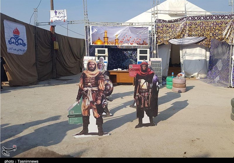 در چند موکب هم فردی بالباسی شبیه به لباس سید الشهدا(ع) تلاش می‌کند مظلومیت این امام بزرگوار را به زائران نشان دهد و فضای مسیر پیاده‌روی را برای زائران پربارتر کند.
