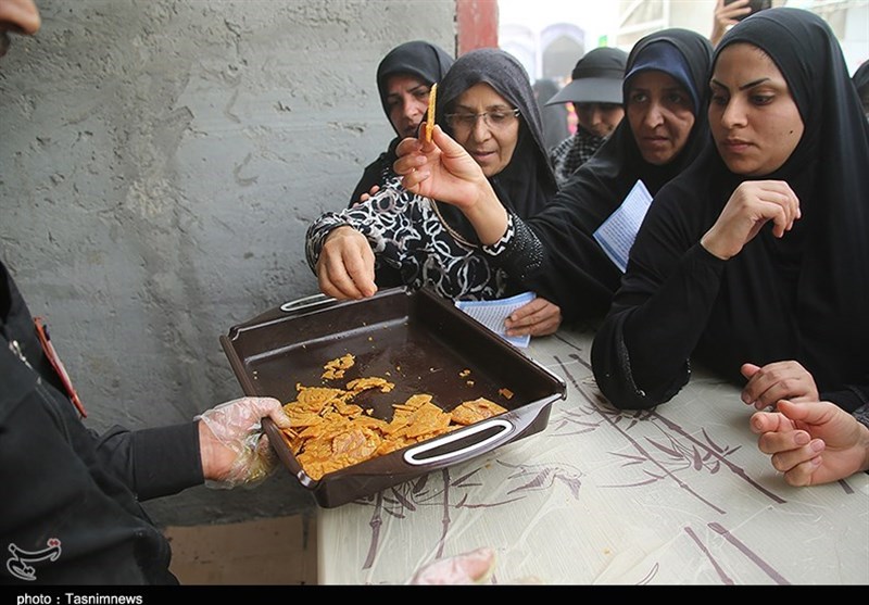پخت و توزیع غذای گرم در بین زائران کربلای معلا از جمله خدمات موکب شهدای خط شکن شهرستان آغاجاری در مرز شلمچه خرمشهر است.