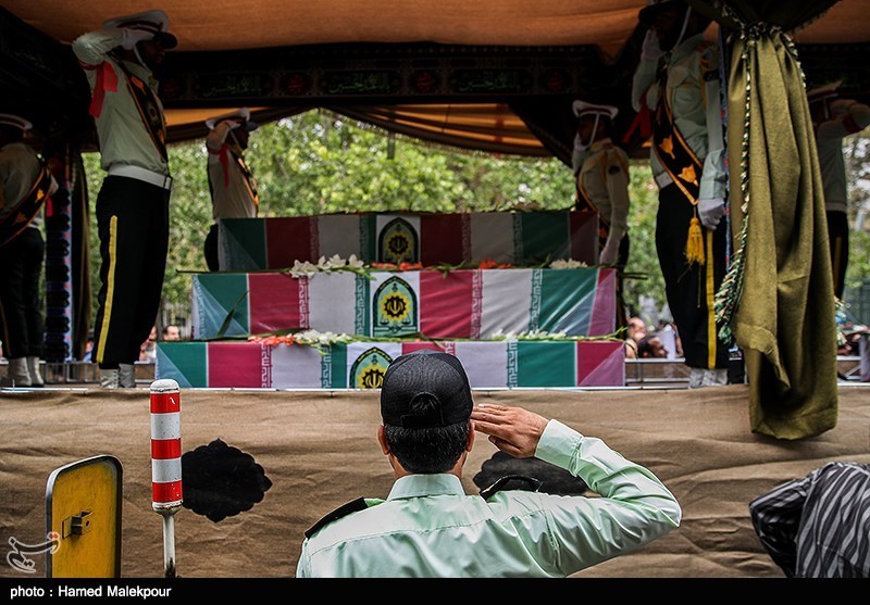 حسین حسین شعار ماست شعار افتخار ماست و این گل پرپر از کجا آمده از سفر کرببلا آمده از جمله دیگر شعار مردم خوزستان در تشییع چهار شهید نیروی انتظامی بود.
