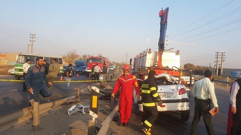 وی ادامه داد: پیش از رسیدن آتشنشانان یکی از سرنشینان از داخل خودرو خارج شده اما دو سرنشین دیگر همچنان داخل خودرو محبوس بودند که آتشنشانان بهسرعت ایمنسازیهای لازم را انجام دادند و پس از دقایقی با استفاده از تجهیزات هیدرولیکی موفق شدند دو سرنشین محبوسشده را از داخل خودرو خارج کنند.