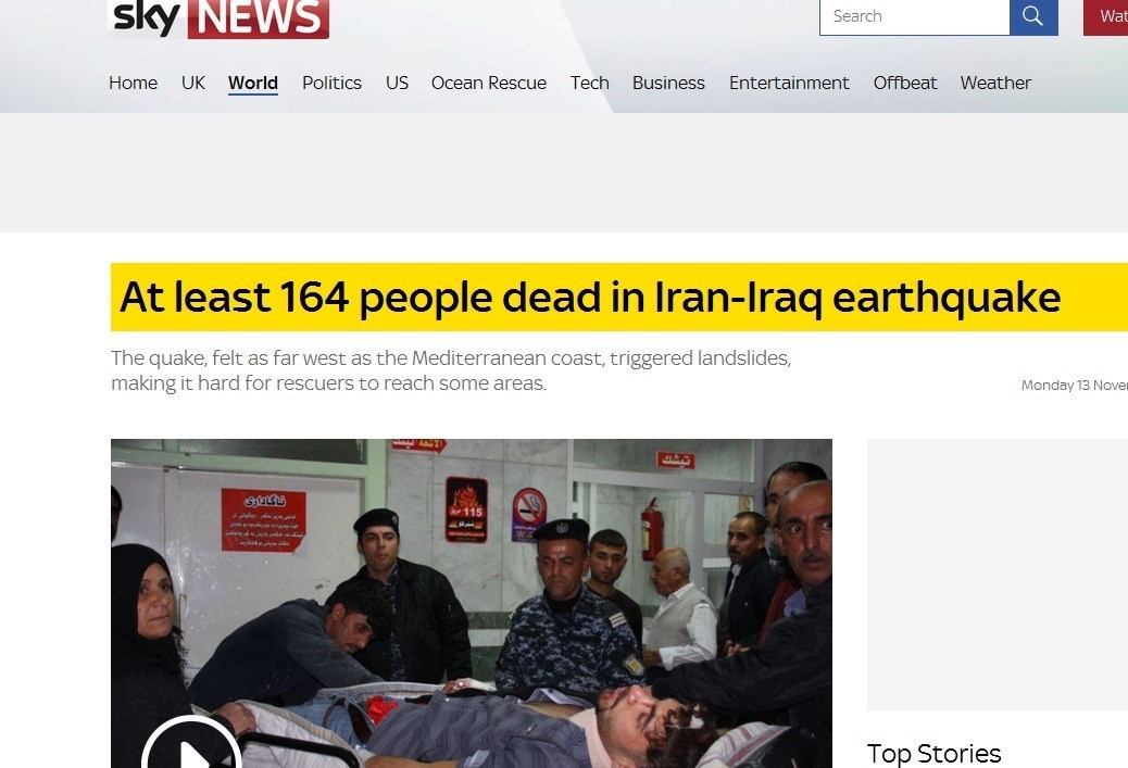 اسکاینیوز نیز با اشاره به این حادثه نوشت: "صحنههای مشابه با آنچه در استانهای غربی ایران رخ داد در اربیل و دیگر شهرهای شمال عراق نیز دیده میشود که نزدیک به مرکز این زمینلرزه هستند.