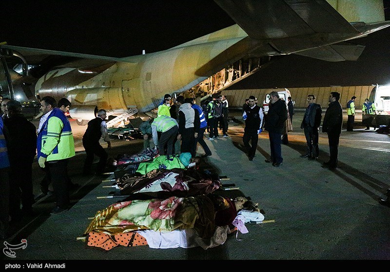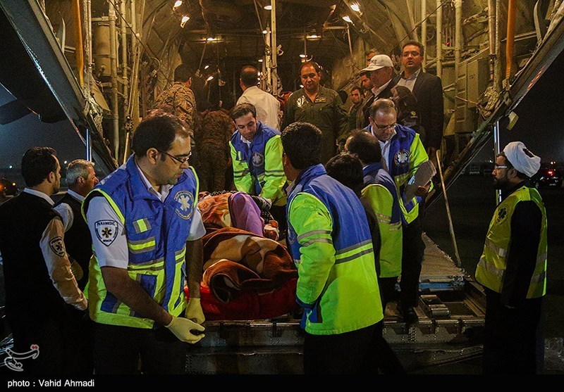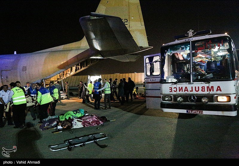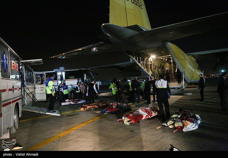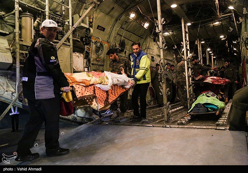 به گزارش خبرنگار دفاعی خبرگزاری تسنیم، جمع زیادی از مجروحان زلزله 7.3 ریشتری کرمانشاه به دلیل کمبود امکانات پزشکی توسط هواپیماهای ترابری سی 130 (هرکولس) نیروی هوایی ارتش و هواپیمای ایلوشین نیروی هوافضای سپاه به تهران منتقل شده‌اند.