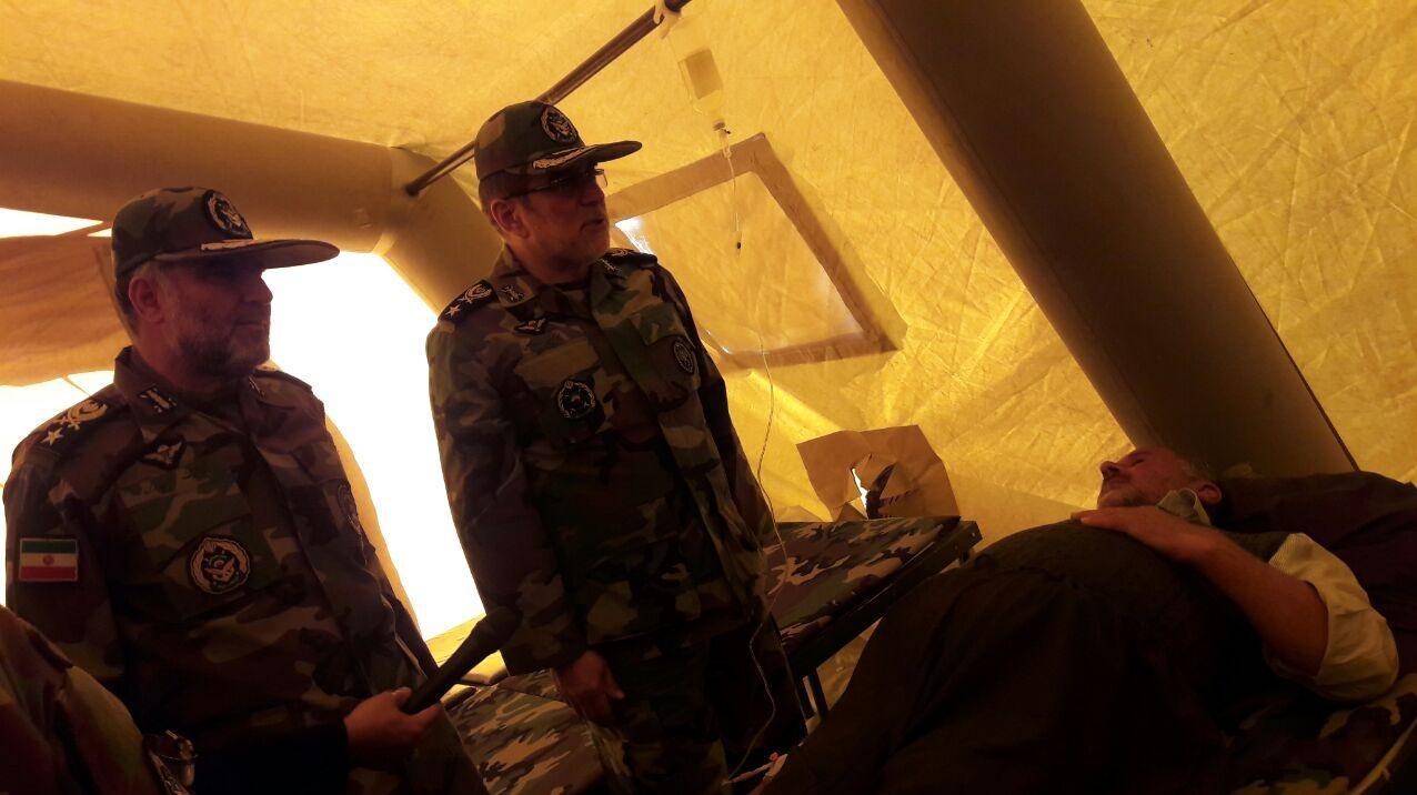 وی در بدو ورود به سر پل ذهاب، از بیمارستان صحرایی نیروی زمینی ارتش در این شهر بازدید کرد.
