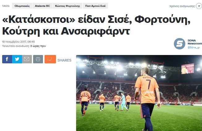 به گزارش خبرگزاری تسنیم، به نقل از سایت SDNA یونان، نمایندگان باشگاههای ایتالیایی آتلانتا، یوونتوس و لخ پوزنان لهستان شب گذشته دیدار تیمهای المپیاکوس و لوادیاکوس در هفته یازدهم سوپر لیگ یونان را از نزدیک تماشا کردند. در این بازی المپیاکوس با نتیجه 2 بر یک برنده شد و کریم انصاریفرد 90 دقیقه در ترکیب المپیاکوسیها بازی کرد.