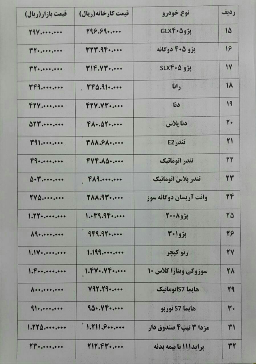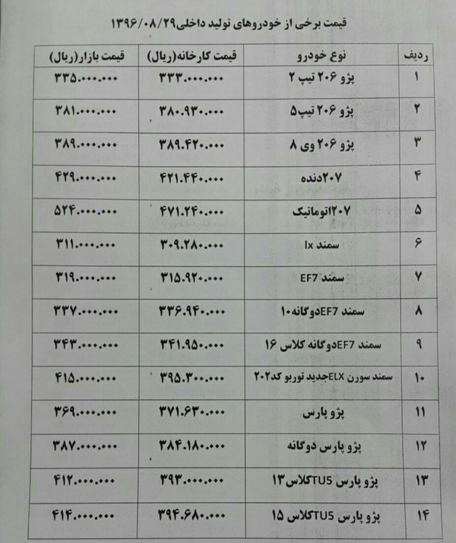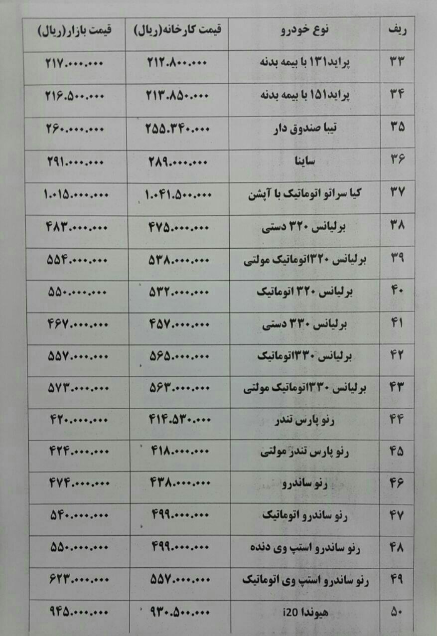 قیمت 50 مدل خودروهای داخلی در بازار امروز به شرح زیر است: