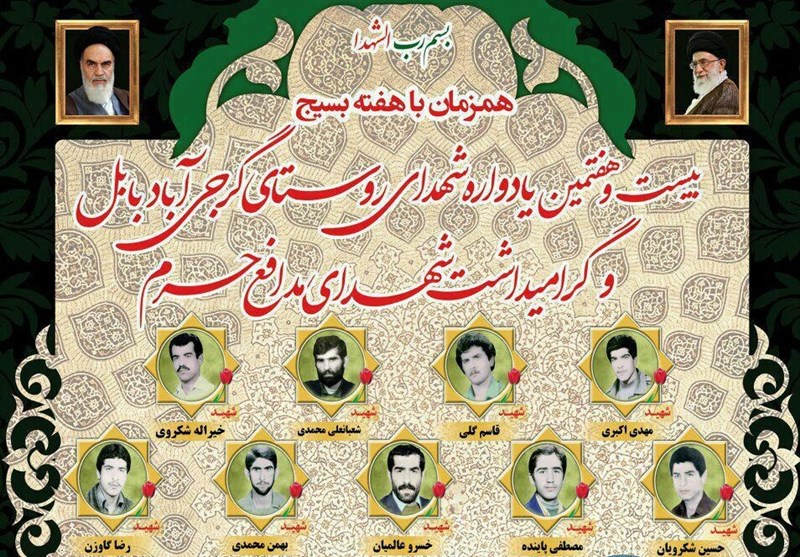 یادواره بیست‌وهفتم 9 شهید روستای گرجی‌آباد بابل و مدافعان حرم برگزار می‌شود