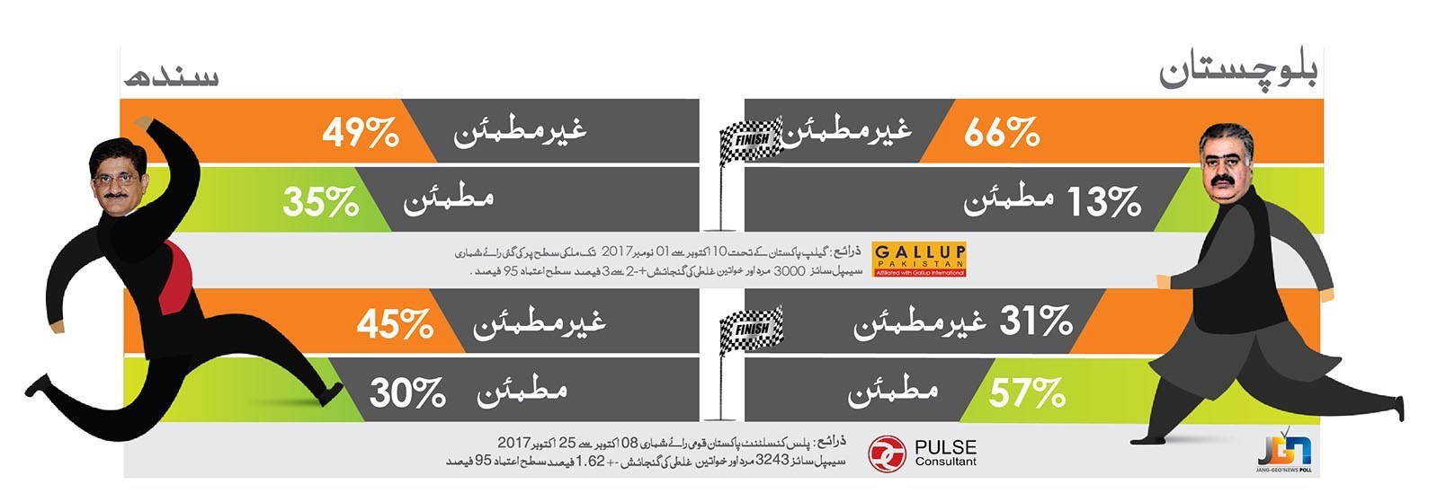 به گزارش دفتر منطقهای خبرگزاری تسنیم به نقل از جیو نیوز، نظرسنجیهای صورت گرفته توسط مجموعههای معتبر طی یک ماه اخیر نشان میدهد که اکثریت مردم ایالتهای سند و بلوچستان از حکومتهای ایالتی خود کاملا مایوس شدهاند.