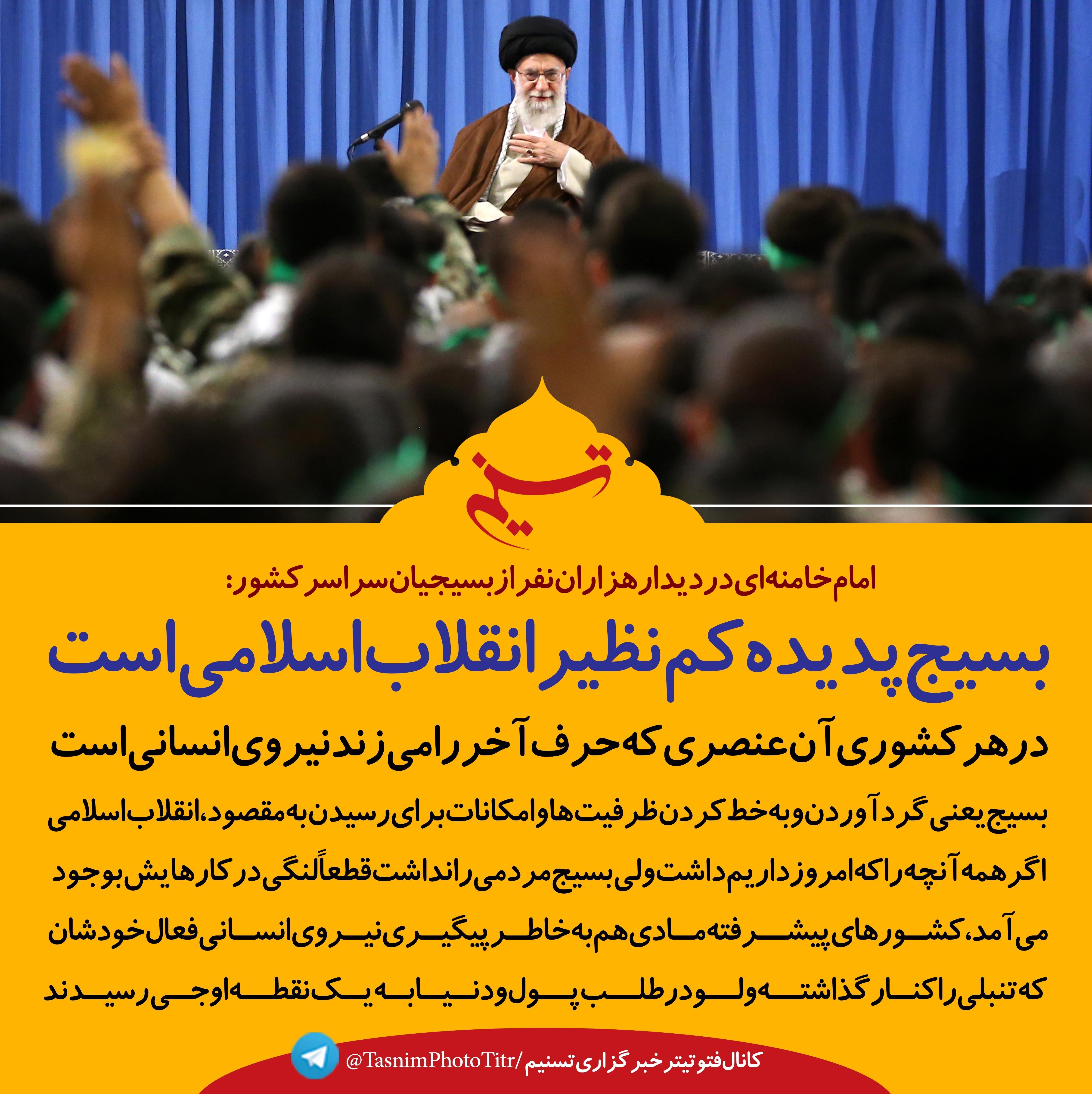 فتوتیتر/امام خامنه ای: بسیج پدیده کم‌نظیر انقلاب اسلامی است