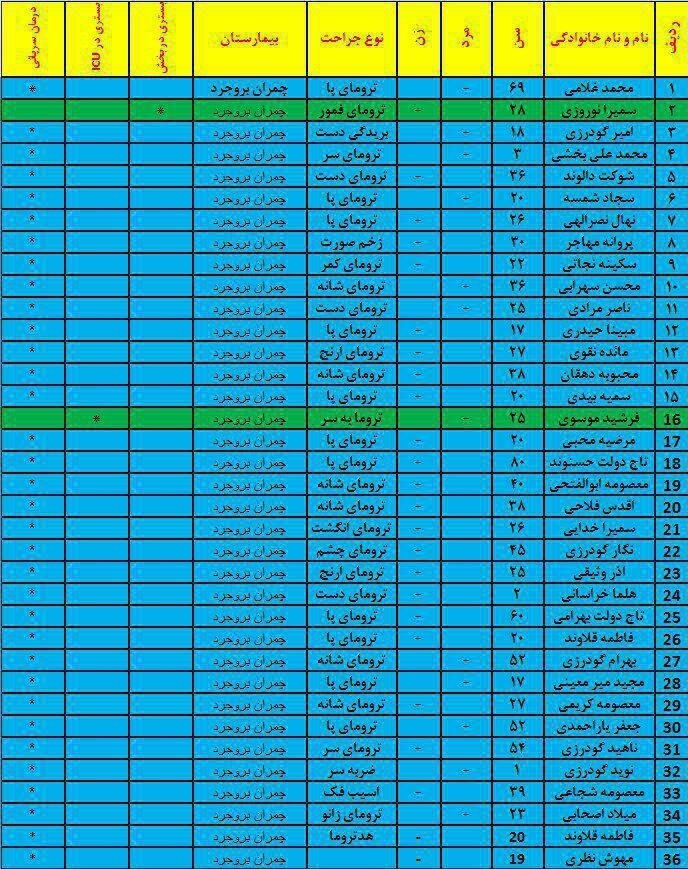 اسامی 36 مصدوم زلزله بروجرد در زیر آمده است: