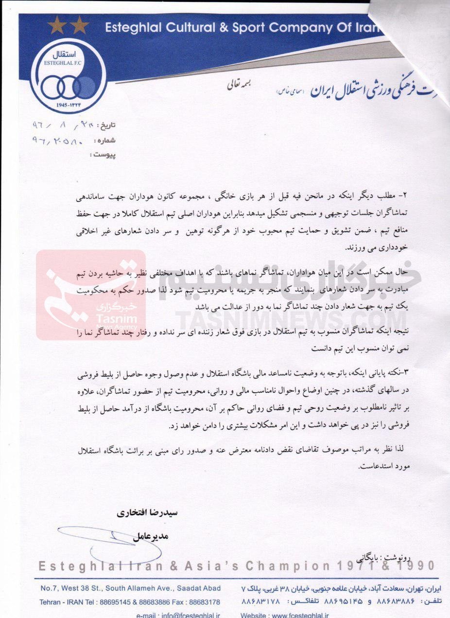 بیشتر بخوانید: درخواست باشگاه استقلال برای بخشش تماشاگران بدون ارسال نامه به کمیته استیناف!