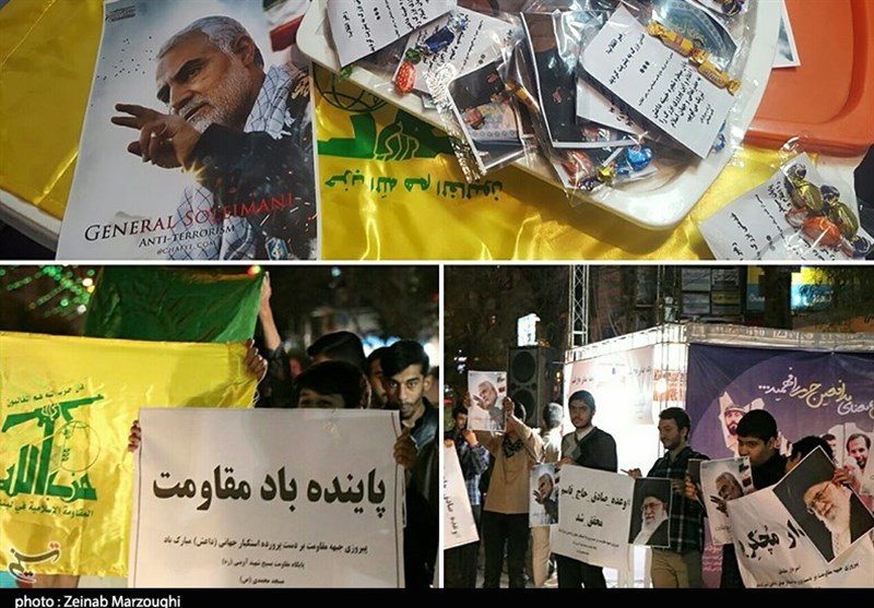 در این جشن جوانان اهوازی با پخش شیرینی و در دست داشتن تصاویر امام خامنه‌ای، سردار حاج قاسم سلیمانی و همچنین پرچم حزب‌الله لبنان از این پیروزی بزرگ ابراز خرسندی کردند همچنین جوانان اهواز از پایان داعش با نام وعده صادق سردار سلیمانی در دست نوشته‌های خود یاد کرده بودند.