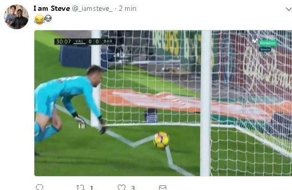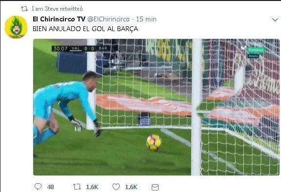 به گزارش خبرگزاری تسنیم، شب گذشته (یکشنبه) در تساوی یک - یک تیمهای والنسیا و بارسلونا در ورزشگاه مستایا اتفاقی جنجالی رخ داد. در دقیقه 23 بازی، زمانی که هنوز گل به ثمر نرسیده بود، مسی توپی را به سمت دروازه والنسیا شلیک کرد که با اشتباه نتو، دروازهبان حریف به اندازه نیم متر از خط دروازه تیم میزبان رد شد، اما داور مسابقه، ایگلسیاس ویانووا و کمک او، این صحنه را ندیدند و گلی اعلام نشد. این اتفاق مشابه گلی بود که فصل گذشته بارسلونا در خانه رئال بتیس به ثمر رساند و آن را هم داور ندید.
