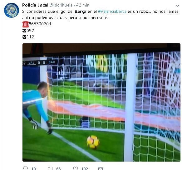 اداره پلیس والنسیا: اگر فکر میکنید که گل بارسلونا در والنسیا مورد سرقت واقع شده است،