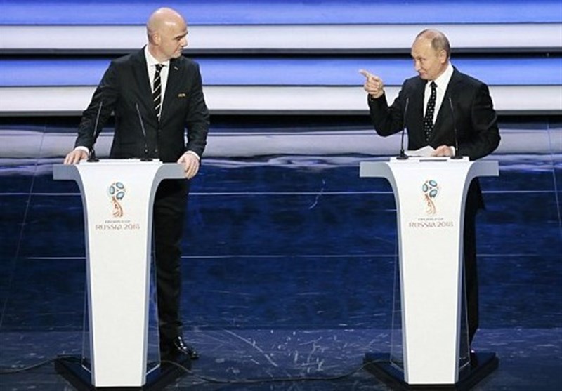* اینفانتینو پس از سخنرانی پوتین به تمام میهمانان مراسم قرعه کشی جام جهانی خوش آمد گفت و در بخشی هم به زبان روسی از آنهایی که به مراسم آمدهاند تشکر کرد.