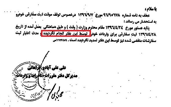 در ادامه این بخشنامه امده است، عدم ترخیص خودرو شامل هرگونه تمدیدیه ثبت سفارش از تاریخ مورد اشاره میگردد.