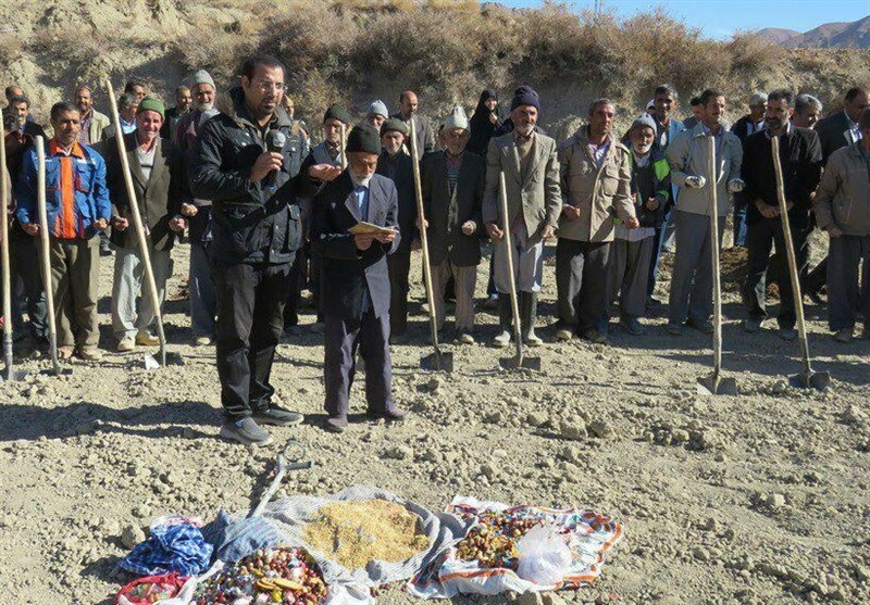 کشاورزان بعد از فرا رسیدن نیمه عقرب یا نیمه آبان روز خاصی را انتخاب میکنند و با اعلام همگانی در روستا، مردم خود را برای این مراسم معنوی و سنتی که قدمت بسیاری دارد آماده میکنند و صبح با بیلهای در دست و مقداری بذر گندم مرغوب به مزارع میروند و در صفهای مرتب و رو به قبله میایستند.