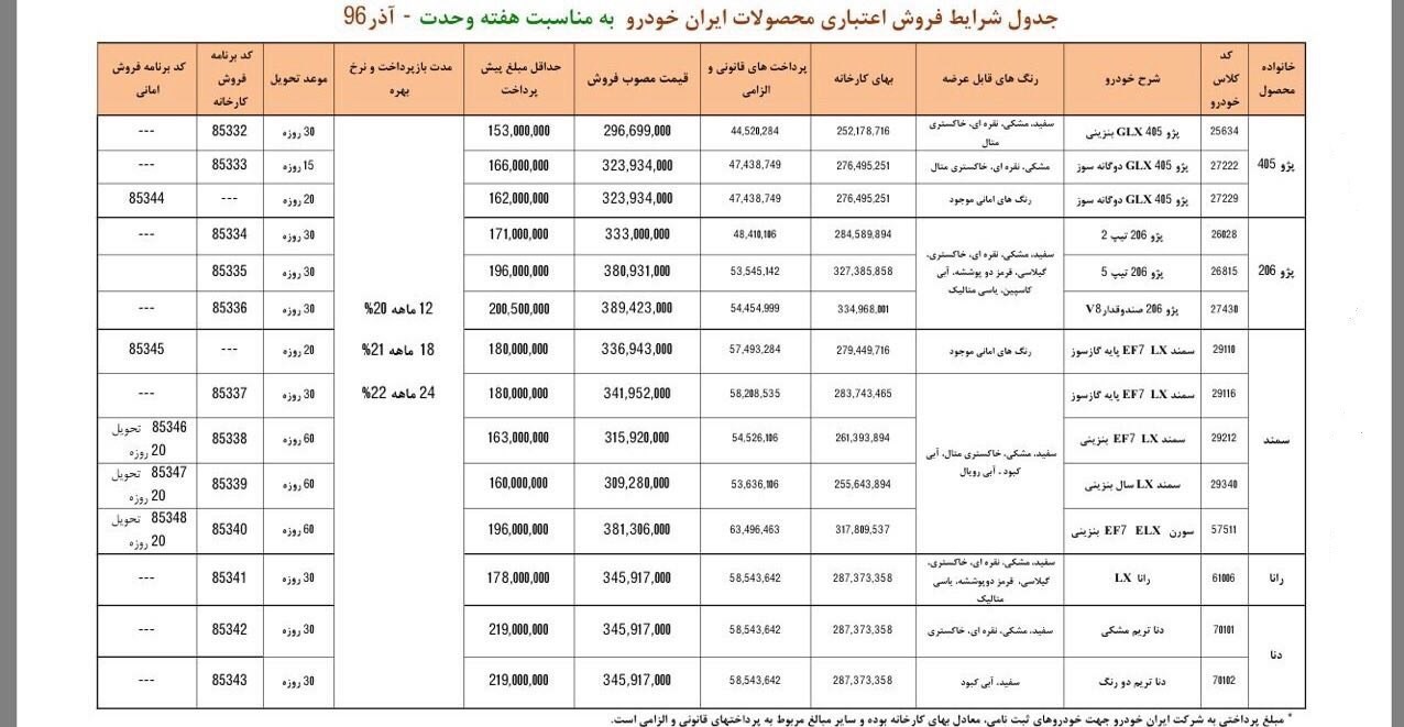 شرایط فروش اعتباری محصولات ایران خودرو اعلام شد+ جدول