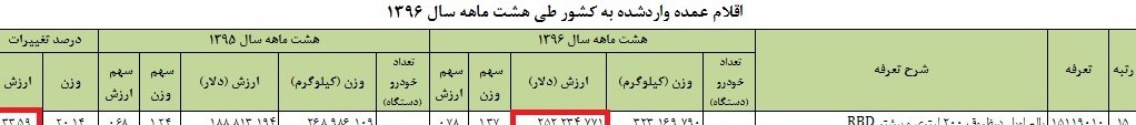 در 7 ماهه نخست سال جاری 284 هزار تن از این محصول وارد کشور شده بود که به این ترتیب تنها در یک ماه حدود 40 هزار تن از روغن وارد ایران شده است.