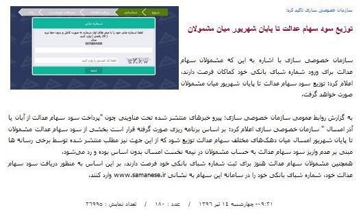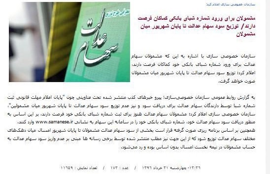 اگر واقعا برنامه ریزی برای پرداخت سود سهام عدالت آنقدر پیچیده است و نیاز به صرف مدت زمتن بیشتر و نامعلومی دارد، چرا سازمان خصوصی سازی در سایت رسمی خود با خبرهای سرکاری با اعصاب مردم بازی می کند.