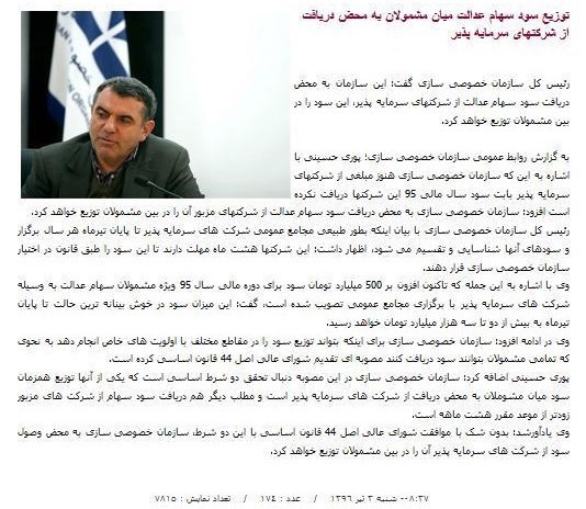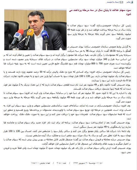 در ادامه برخی دیگر از خبرهای سازمان خصوصی سازی که طی شش ماه گذشه در خصوص زمان واریز سود سهام عدالت منتشر شده را ببینید: