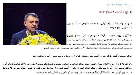 این خبر را مسعود کرباسیان وزیر امور اقتصادی و دارایی اعلام کرده و گفته بود: سود سهام عدالت بهتدریج از آبان ماه پرداخت خواهد شد.