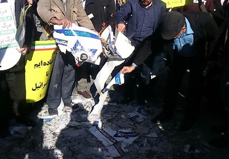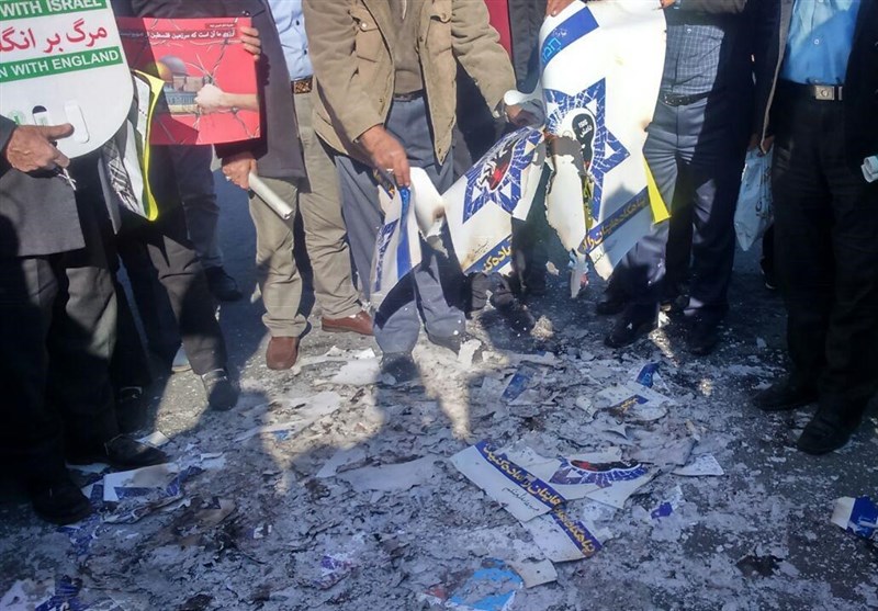 در پایان تظاهرات، مردم تهران پرچمهای رژیم صهیونیستی را به آتش کشیده و با سردادن شعار "مرگ بر اسرائیل" خشم خود را نسیت به جنایات رژیم صهیونیستی اعلام کردند.