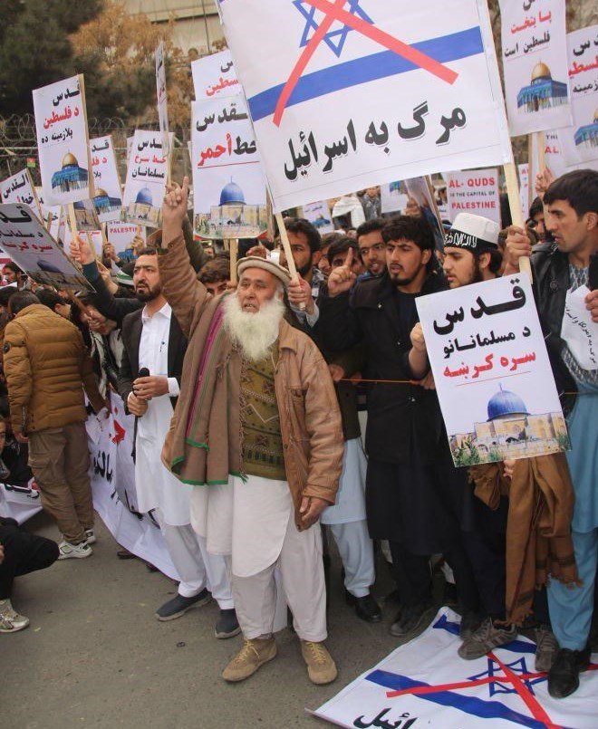 مردم کابل نیز پس از نماز جمعه با پلاکاردهایی که در دست داشتند شعار دادند که قدس پایتخت فلسطین است نه پایتخت رژیم صهیونیستی و ما تا آخرین نفس از مردم فلسطین حمایت خواهیم کرد.