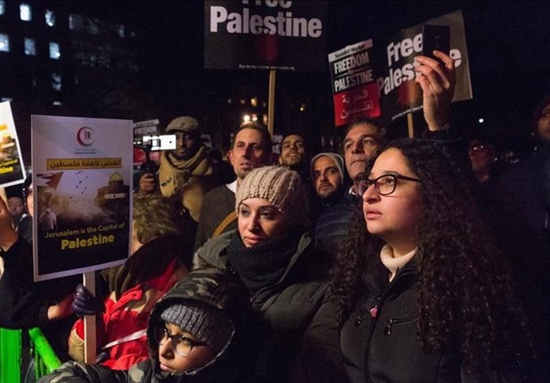به گزارش گروه بین الملل خبرگزاری تسنیم به نقل از خبرگزاری آناتولی، در حالی که دونالد ترامپ رئیس جمهور آمریکا اخیرا شهر قدس اشغالی را به عنوان پایتخت اسرائیل به رسمیت شناخته است، حدود سه هزار نفر از معترضان با تجمع در مقابل سفارت آمریکا در شهر لندن، شعارهایی در حمایت و همبستگی با مردم فلسطین سردادند.